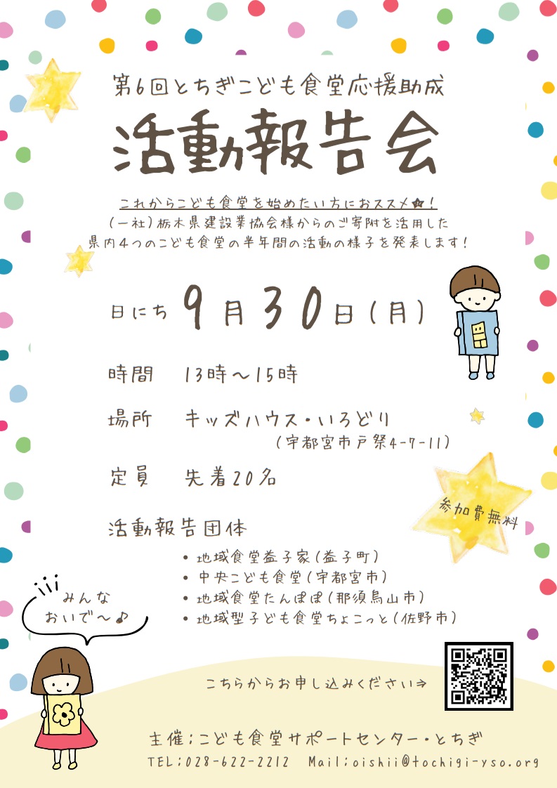 【参加者募集】第6回とちぎこども食堂活動助成 活動報告会