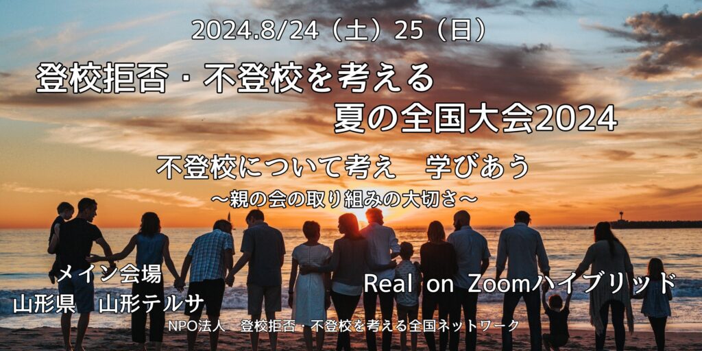 登校拒否・不登校を考える全国ネットワークでは、今年も8月24日・25日に「登校拒否・不登校を考える夏の全国大会」を開催いたします。