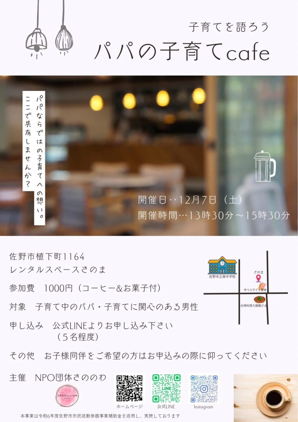 子育て中の男性、子育てに関心がある男性は是非ご参加ください。