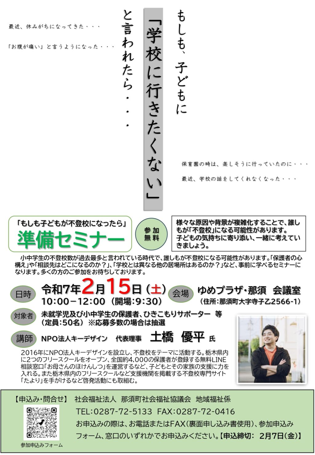 那須町社会福祉協議会主催の不登校準備セミナーとなります。