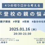 小中学生の不登校数が過去最多と言われている時代で、誰しもが不登校になる可能性があります。「保護者の心構え」や「相談先はどこになるのか?」、「学校とは異なる他の居場所はあるのか?」など、事前に学べるセミナーになります。
