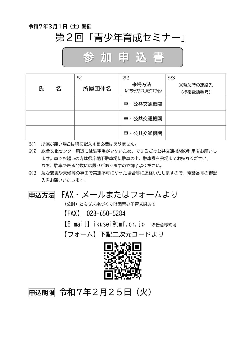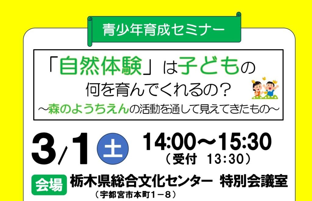 栃木県青少年育成県民会議が主催する、青少年育成セミナーとなります。