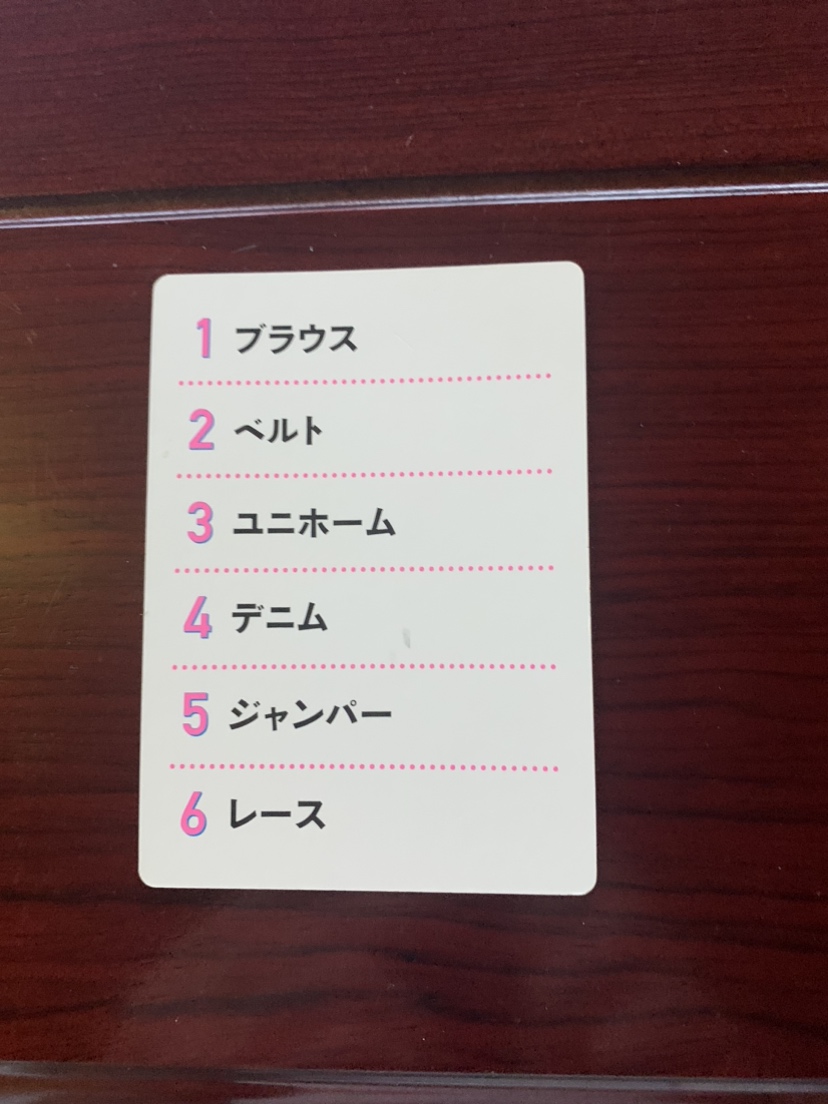 ・親がカタカナ語を使ってしまった場合は、気づいた人が指摘し、その場合は、親からお題カードをもらって得点(1点)にし、次の親となります。
