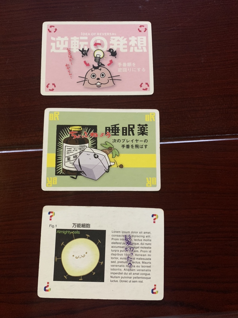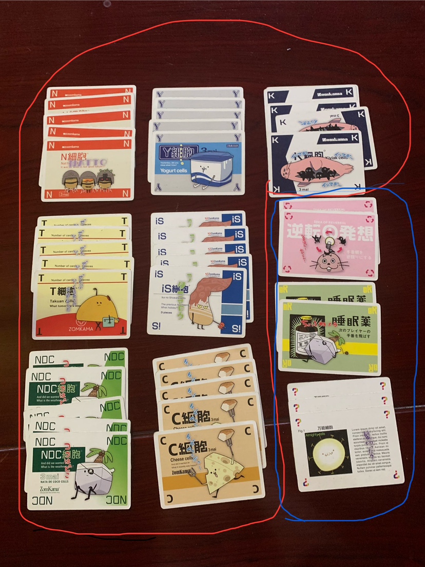 赤で囲っているのが細胞カード、青で囲っているのが特殊カードと分類されます。