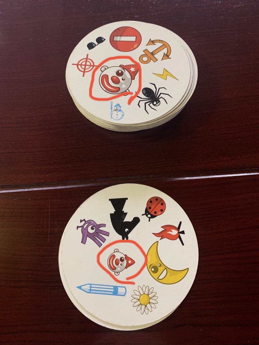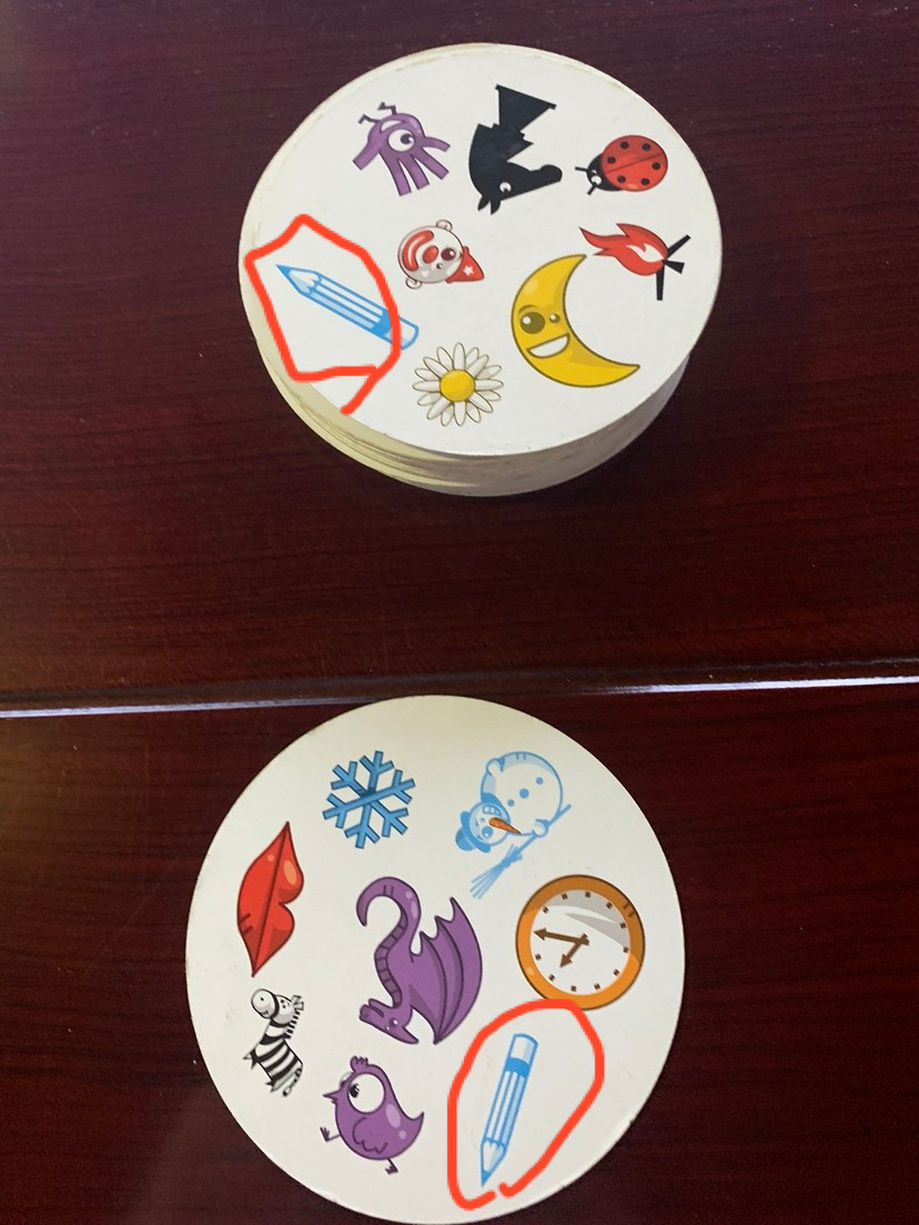 ドブルのカード枚数は全部で55枚ありますが、どのカードにも共通している絵柄がひとつはあります。