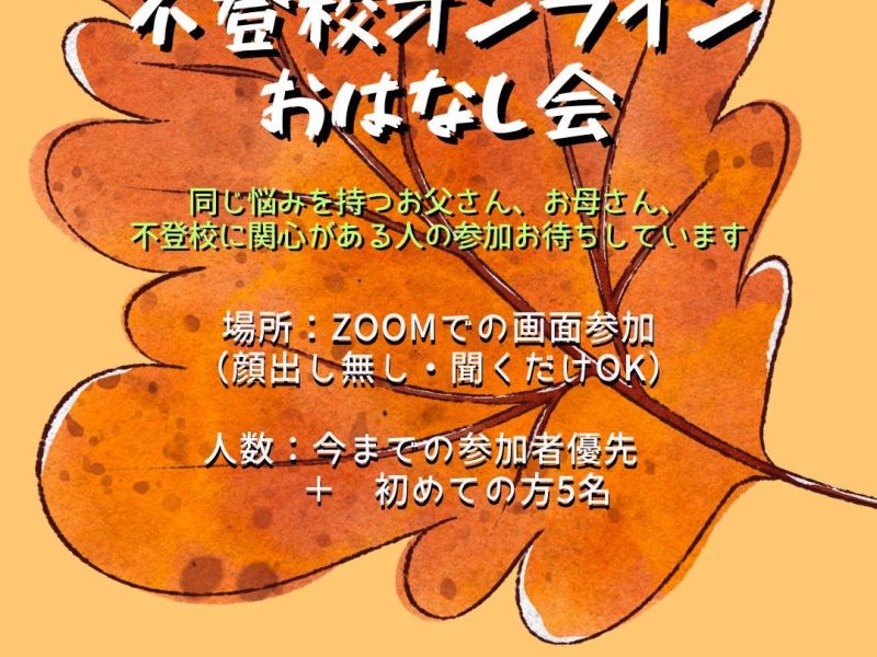 | 対象者 | 保護者(不登校に関心のある方など、基本的にどなたでもOK) ※基本的に親の会として実施しています。 |